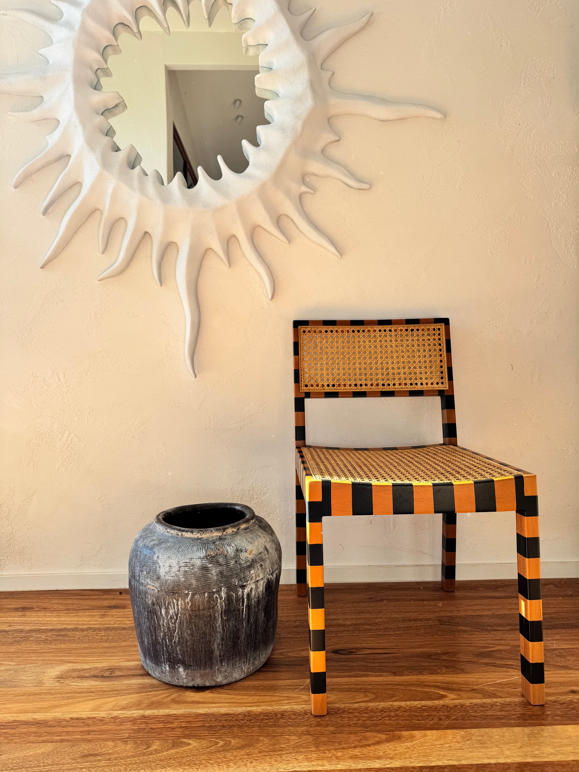 Defined by dramatic curves and a raw textured finish, The Offering is both mirror and artwork — a centrepiece that transforms any wall into a moment of reverence. With its spiked silhouette and subtle imperfections, this mirror brings depth, movement, and emotion to a space.